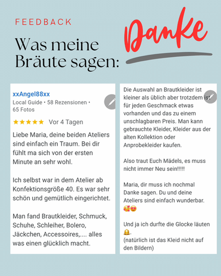 Dies findet ihr die neuesten der von den über hundert Google-Rezensionen, die ich bereits erhalten habe: